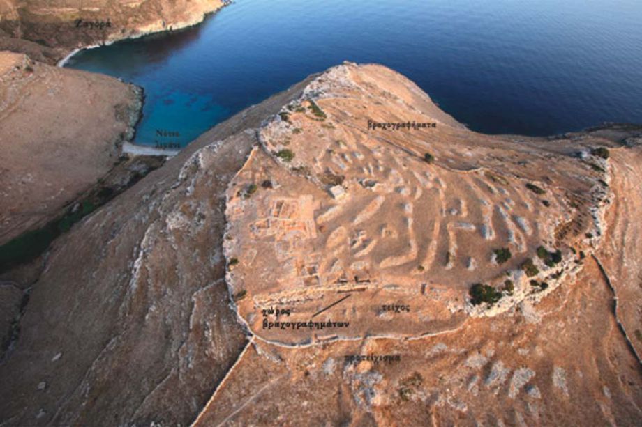 Large buildings, arched and quadrilaterals walls, which are preserved up to 1 meter height were revealed. The largest part of the wall has been found about 100 meters in length, still standing up to 2 meters in height, with a thickness of 1.60 to 2 meters. The 1.5 meter wide gate is protected by a precursor-shaped bastion and is 2000 years older than the known early Cycladic fortifications.