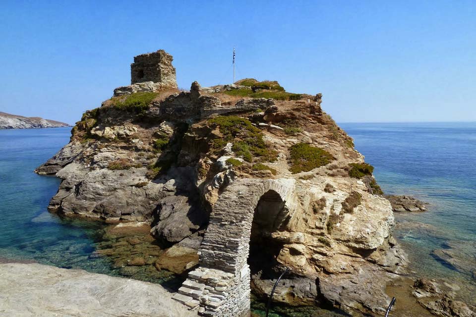 The Lower Castle was built on a small peninsula and on an islet at the eastern part of the island of Andros, where Chora is located today. The site offered natural protection being surrounded on three sides by water with only the western one facing the mainland.
