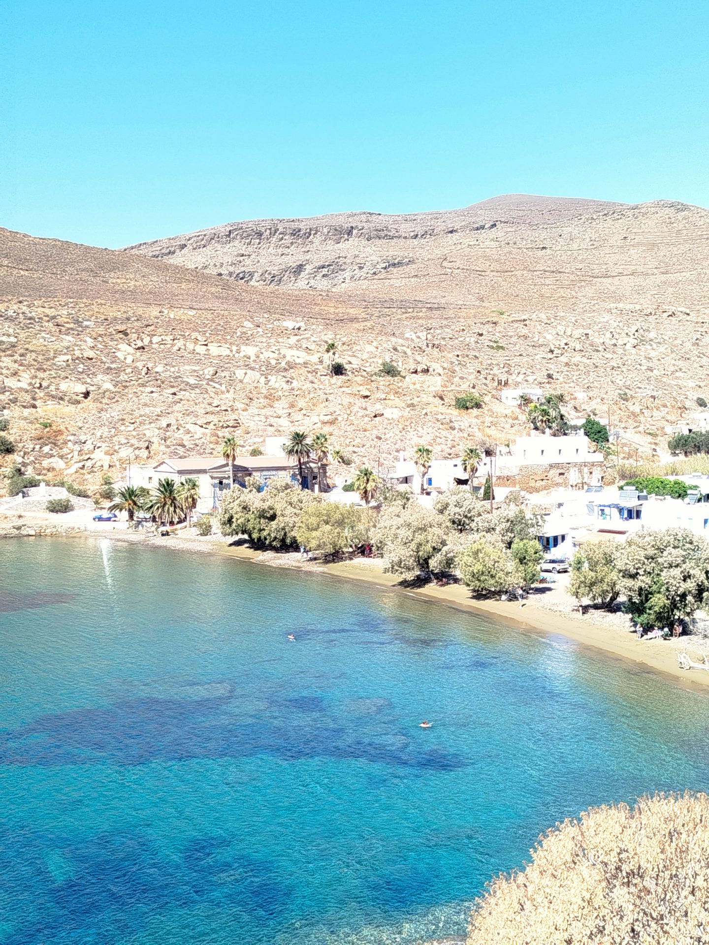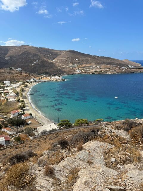 Inland villages such as Dryopida, with its distinctive tiled roofs and traditional character, and the hilltop Chora of Kythnos, offer insight into everyday island life away from the coast. Along the way, ancient paths lead to archaeological sites, thermal springs in Loutra and beaches like Kolona and Apokrousi, where land and sea meet in simple, striking landscapes.