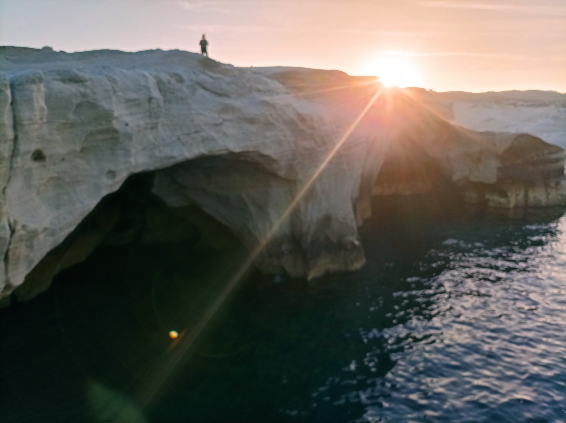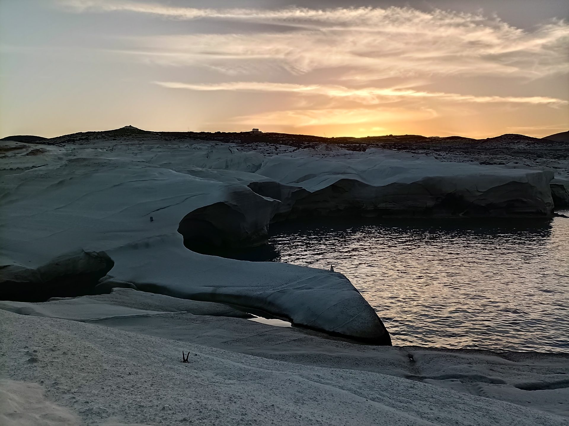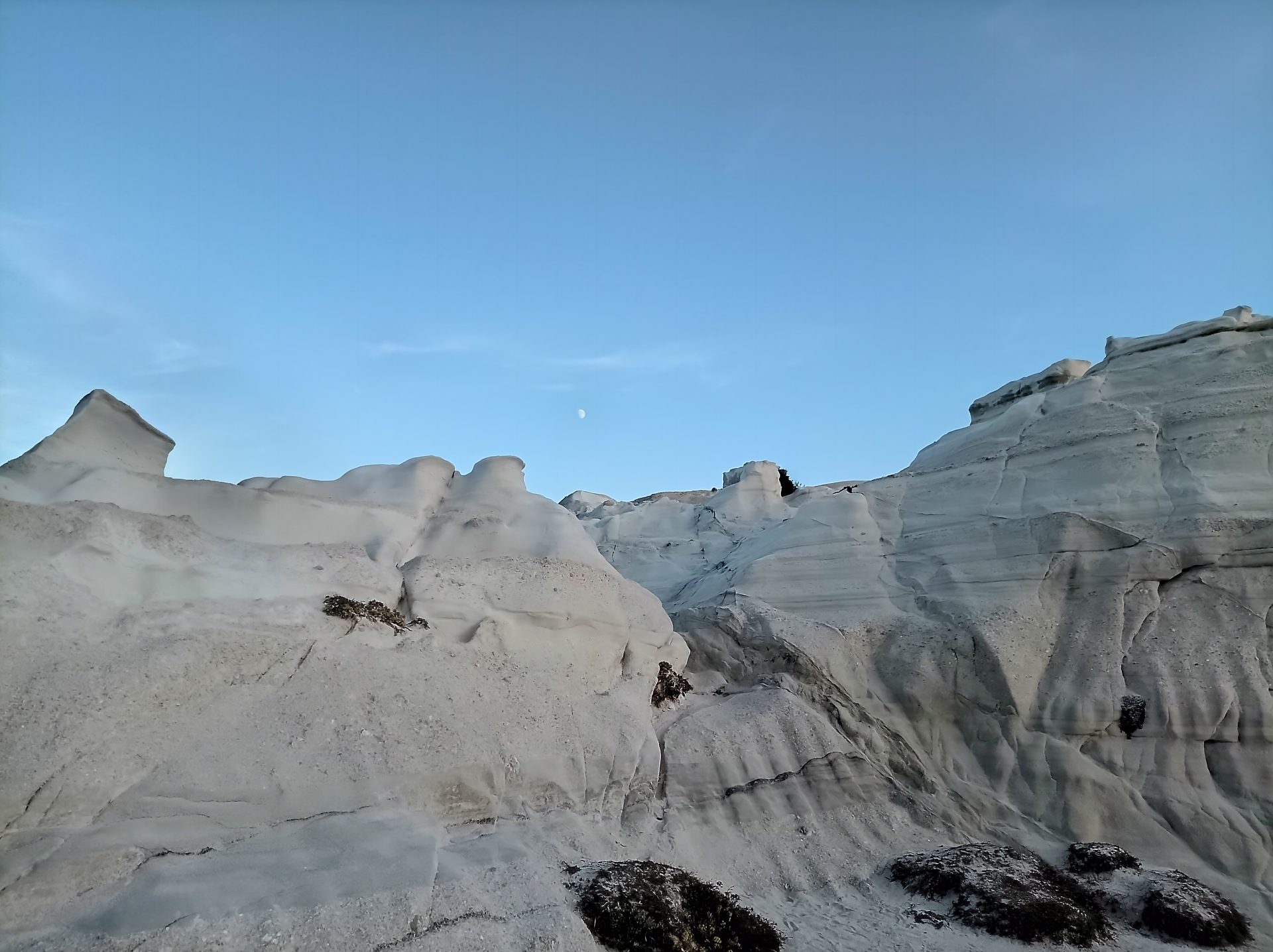 Discover Milos’ incredible coastal landscapes on this scenic hike. Begin at the ruins of Fylakopi, an important Minoan settlement, and follow trails leading to dramatic volcanic formations and secluded beaches. Swim in the turquoise waters of Papafranga, admire the sea caves of Agios Konstantinos, and explore the boat garages of Mytakas. Continue to Sarakiniko, where stark white volcanic rocks meet the vivid blue sea, creating a surreal “lunar” landscape. The day ends at the picturesque Mandrakia harbor, with a drink and a meze, followed by dinner in Plaka after a sunset visit to the castle.