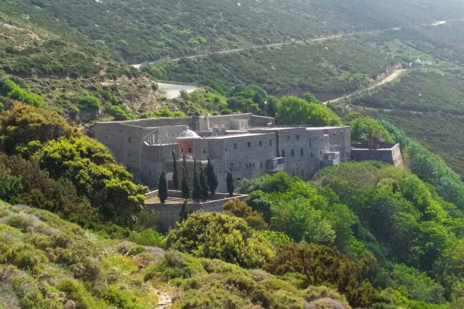 It is the largest monastery in Andros. Locals also call it “Agias” and its celebration day is the first Friday after Greek Orthodox Easter Sunday. The date of its construction remains unknown. According to the tradition was used as a school and became a monastery in 842. It hosts rare icons of the 14th and 16th century, a rich library with books and manuscripts, as well as a museum with holy vessels and vestments. There is also a small collection of prehistoric tools. The monastery is officially recorded for the first time in 1400, while the chapel contains an icon dated from 1325. In 1928 the monastery was converted into a convent.