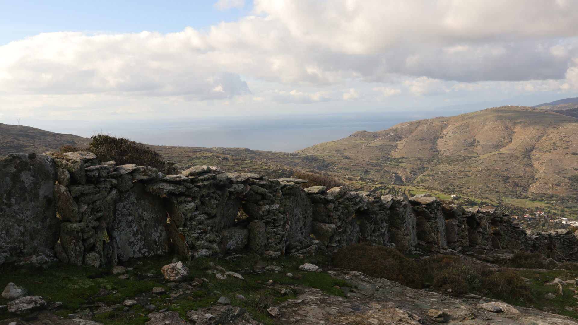 Perfectly connected to the Aegean landscape. Walls made with stones placed next to or on top of each other without connecting material, only with wedges. Their wild beauty creates admiration on how man managed to fight against the forces of nature and transform the barren slopes into arable land, through a rational use of the environment to his advantage. The Andros stone walls have a unique building style: the horizontal building line of stones is interrupted by large plates which are fully integrated into the wall and often protrude over it. This interesting feature of the stone walls of Andros is called “stimata “(plural). Large stone slabs placed vertically into the soil, supporting the wall like columns. Smaller stones where then placed around it “holding” the wall until the next “stima “(single). This is a highly durable way of construction. So in harmony with nature and stones as the main material, the “aimasies” or “pezoules” (terraces) where built, as well as the stone huts, shelters for people and animals, roads, walls, water mills, windmills, bridges, etc. … and as the color of the stone is matching the surrounding rocks, you cannot distinguish human construction to nature. Creations that impress for the incredible manual labor required for their completion. But in addition to their great cultural value, their role in the conservation of the unique biodiversity of Andros is equally important.
