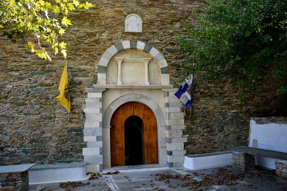 We continue to the northeastern slopes of Andros, passing through the villages of Katakoilos, Arni, and Vourkoti, to reach the Monastery of Agios Nikolaos (Saint Nicholas). Founded in the 11th century and renovated in 1760, this impressive structure is enclosed by high walls and holds a number of small chapels. Highlights include the relic skull of Saint Nicholas, the embroidered icon by nun Leondia (using her own hair), and a magnificent iconostasis. The view from here stretches over the Achla valley, river, and the Aegean Sea.