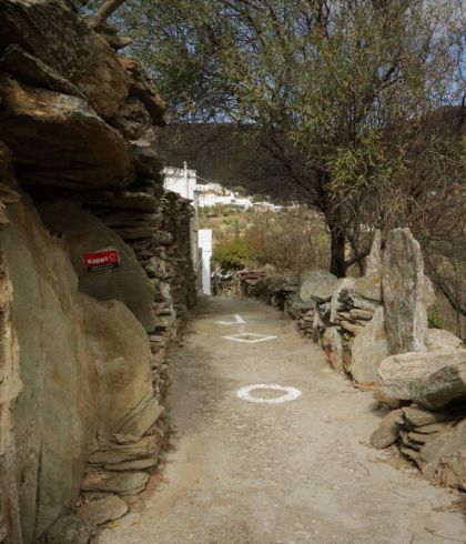 The trail gently ascends along the Kapparianos River, bringing us to the village of Kapparia, perched at 240 meters altitude at the edge of the Korthi valley. The village consists of four distinct hamlets: Pera Chorio, Morakaioi, Megalo Chorio, and Tzeo.